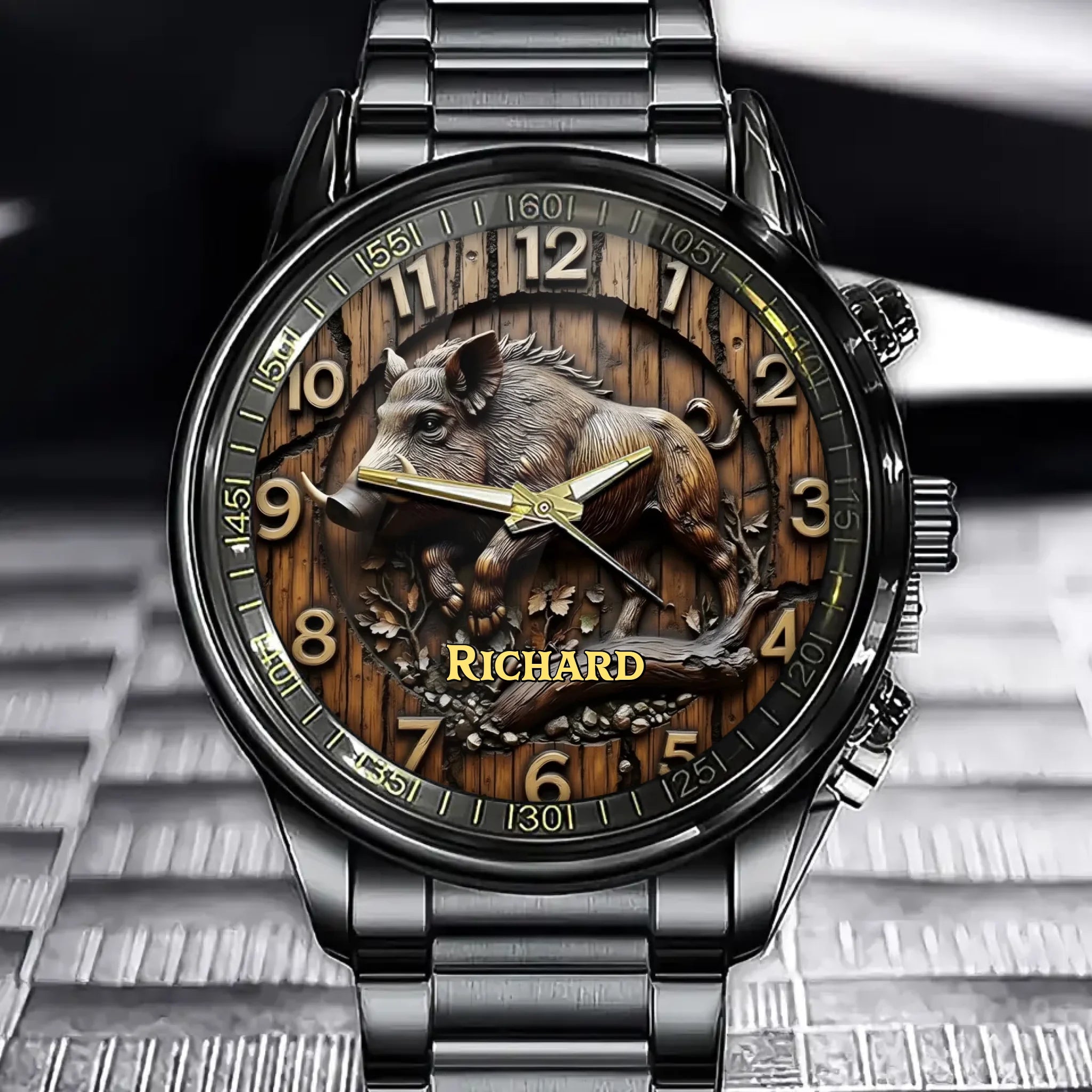 Personalized Wild Boar Watch - Rustic Woodland Themed Dial with Custom Name Option