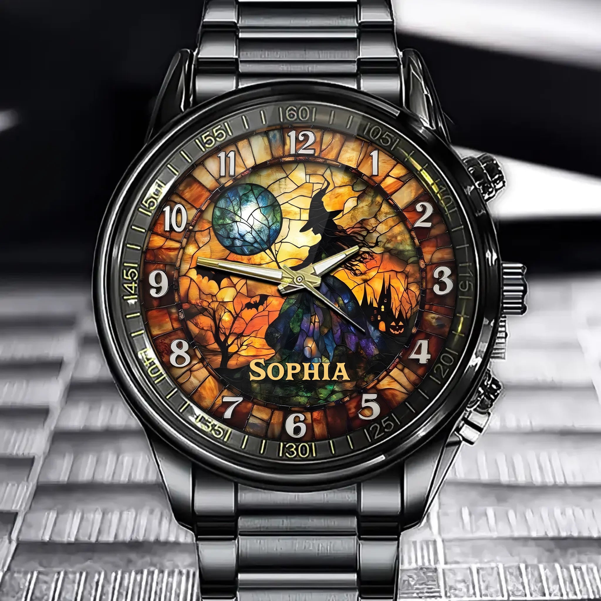 Personalized Witch Night Stained Glass Watch – Add Your Name for a Magical Touch