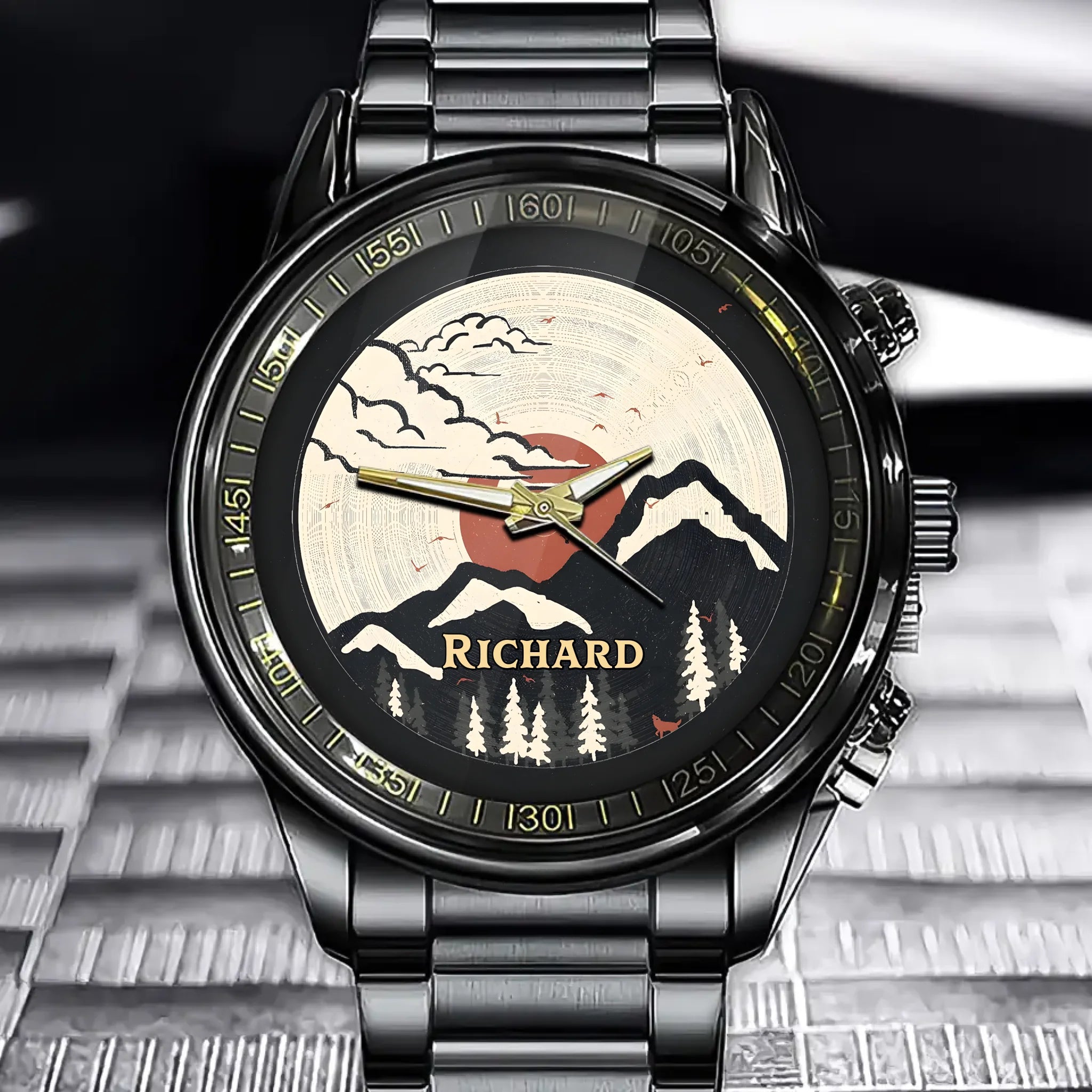 Vinyl Record Sunset Mountain Watch – Custom Name Design
